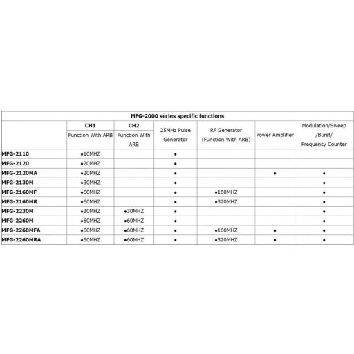 Jednokanałowy generator funkcji arbitralnych o maksymalnej szerokości pasma 10 MHz i generator impulsów o częstotliwości do 25 MHz.