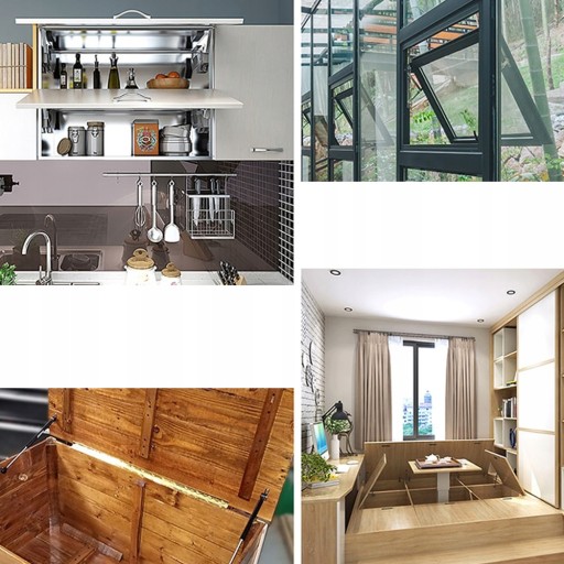PODNOŚNIK / SIŁOWNIK gazowy do frontów meblowych, barków, szafek itd. Solidnie wykonany z wysokiej jakości materiałów. Zestaw 4 SIŁOWNIKÓW z kompletem elementów mocujących.