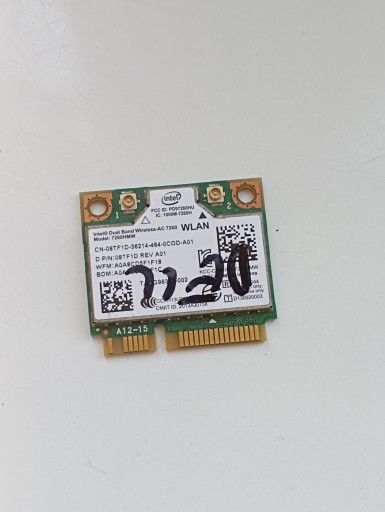 Sprawna karta mini PCI-E WLAN i Bluetooth Intel 7260HMW wyjęta z laptopa Dell.