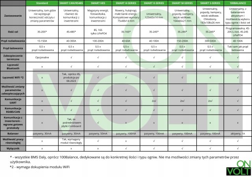 UWAGA: Pomimo znacznego ograniczenia poboru prądu w nowych seriach BMS SMART istnieje ryzyko rozładowania pakietu podczas długiego przechowywania. Takie samorozładowanie nie jest monitorowane i kontrolowane przez BMS. Może to doprowadzić do uszkodzenia ogniw, szczególnie dla pakietów o mniejszej pojemności lub mocno rozładowanych przed przechowywaniem. W przypadku długiego przechowywania konieczna jest okresowa kontrola napięcia akumulatora i ewentualnie jego doładowywanie.