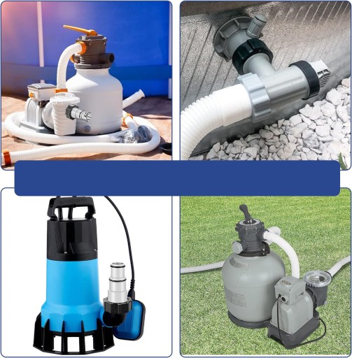 Połącz filtry, pompy głębinowe, pompy basenowe, filtry, filtry piaskowe lub zawory odcinające z przyłączem 2 cale do węża 38 mm/32 mm.