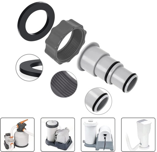 Końcówka przyłączeniowa węża do pompy nadaje się do łączenia węży basenowych. Nadaje się do węża basenowego 38 mm oraz węża basenowego 32 mm na gwint zewnętrzny 2 cale, jak to ma miejsce w przypadku dostępnych na rynku instalacji filtrujących.