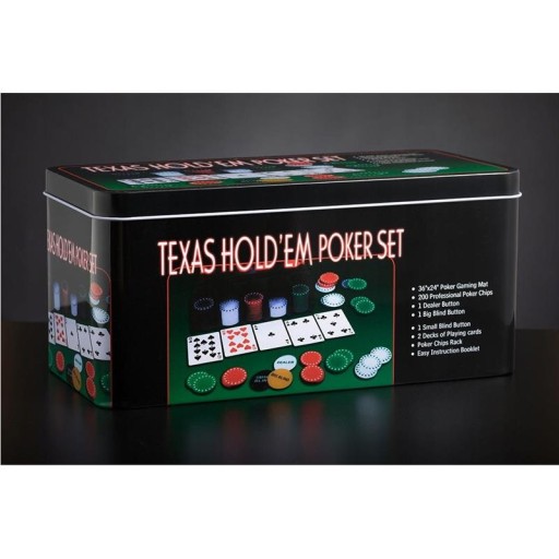 Profesjonalny zestaw do pokera, perfekcyjnie nadaje się na prezent dla każdego miłośnika i nie tylko! W zestawie znajdują się idealnie odwzorowane żetony oraz dwie talie kart, które świetnie nadają się do gier karcianych m.in. grę w pokera, kości, ruletkę lub black jacka. 200 żetonów o nominałach: 1, 5, 10, 25, 50, każdy po 40 sztuk są przechowywane w wygodnym plastikowym stelażu. Rozkładana mata na stół zwiększy realizm i komfort rozgrywek. Cały zestaw jest niezwykle praktyczny, lekki, łatwo się przenosi i pozwoli Ci zachować porządek akcesoriów do gry.