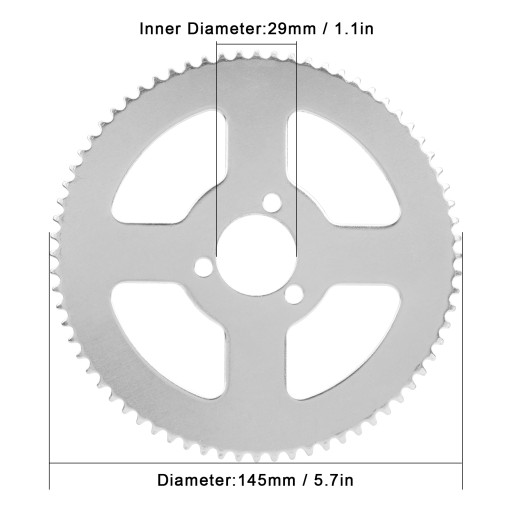 1.Zębatka wykonana jest z wysokiej jakości stali, mocnej i trwałej, ma długą żywotność. 2. Ze stabilną wydajnością i wysoką niezawodnością, odpowiedni do gokartów, quadów, motocykli. 3. Średnica wynosi 145 mm, a średnica wewnętrzna 29 mm, ze świetnym wykonaniem, idealnym zamiennikiem starego. 4. Wygodny w użyciu i niewielkich rozmiarach, łatwy do przenoszenia i przechowywania, bardzo praktyczny. 5. Ścisła kontrola jakości i zapewnienie jakości, wysoki współczynnik bezpieczeństwa, mogą być używane ze spokojem ducha.
