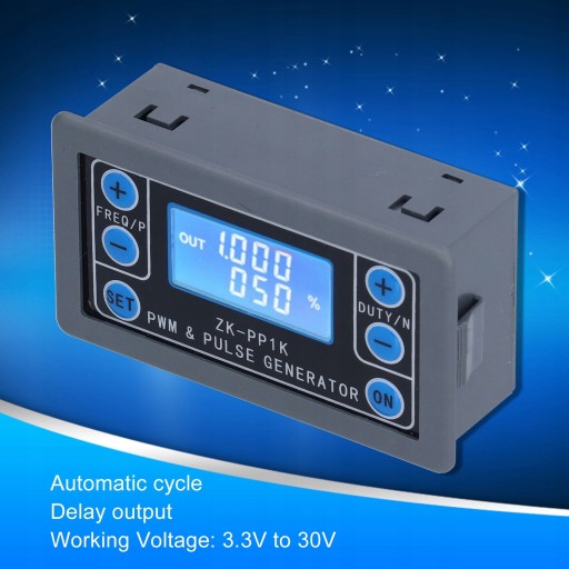 - Długość szerokości impulsu dodatniego i ujemnego: od 0,000 s do 9999 s, ustawienie minimalne to 1 ms