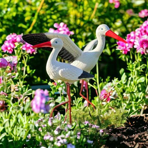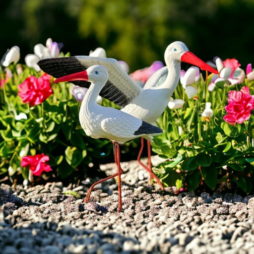 ✔️ Duży bocian wraz z małym dodają animacji i radości, tworząc ujmujący widok w Twoim ogrodzie, na podjeździe lub tarasie.