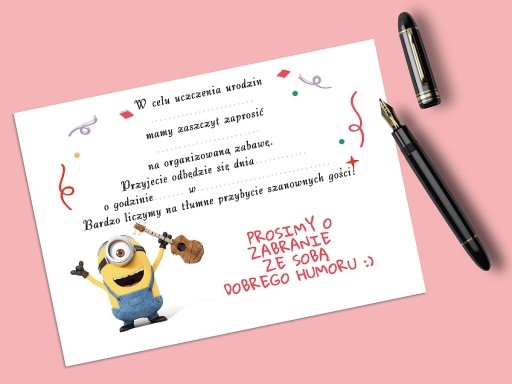 ZAPROSZENIE MINIONKI NA URODZINY DZIECKA + KOPERTA GRATIS