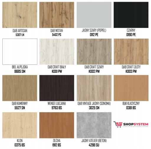 DOSTĘPNE KOLORY PŁYT MARKI KRONOSPAN: