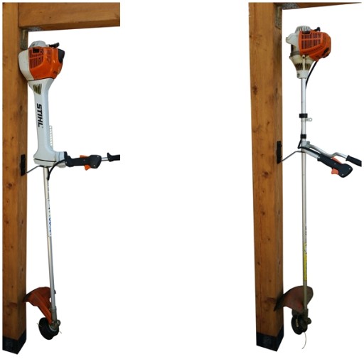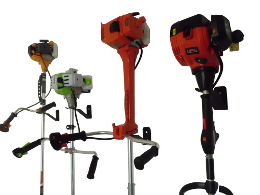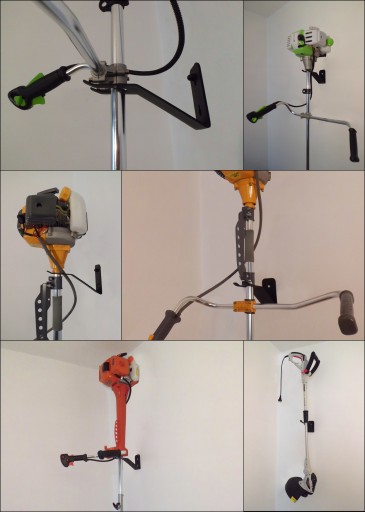 *** Wieszak przyścienny przeznaczony do zawieszania kosy spalinowej lub podkaszarki elektrycznej w pozycji pionowej.
