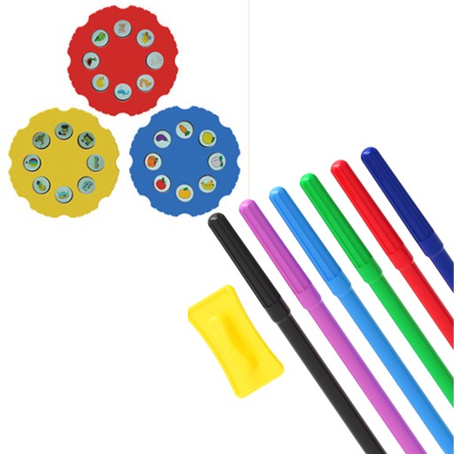 - krążki ze slajdami (zwierzęta, owoce, pojazdy)