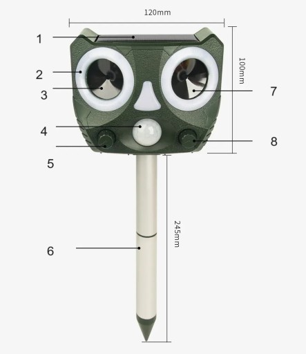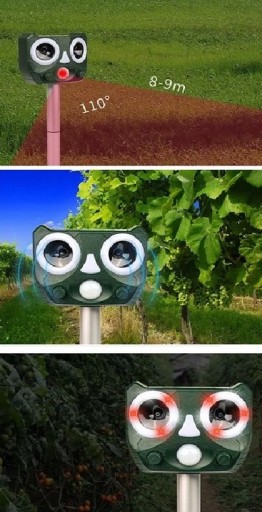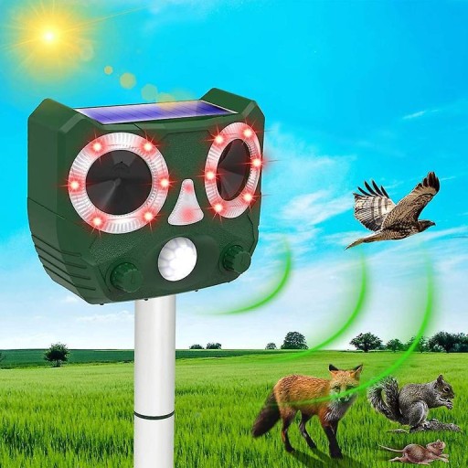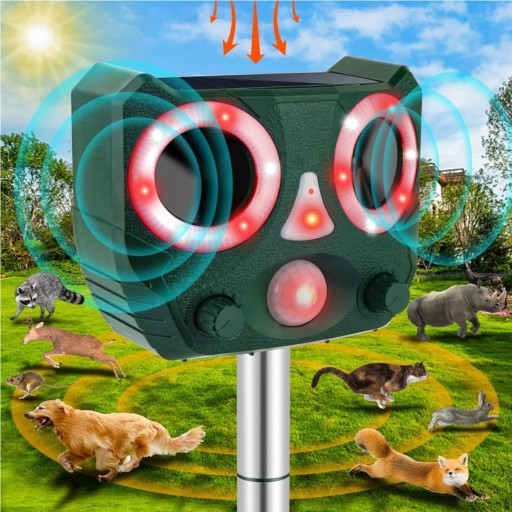 - Większość zwierząt może odbierać dźwięki poza zakresem słyszalnym dla ludzkiego ucha. Urządzenie wykorzystuje energię słoneczną do emitowania fal ultradźwiękowych o różnych częstotliwościach, co sprawia, że zwierzęta czują się niekomfortowo i uciekają z danego obszaru.
