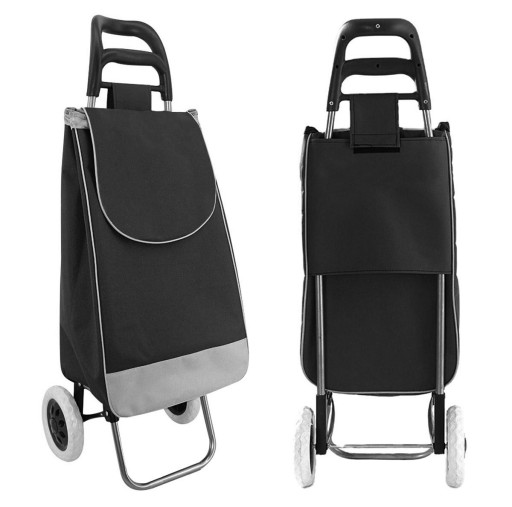 - Wygodny wózek na zakupy, wyposażony w solidne kółka, co znacznie odciąży Twój kręgosłup i ułatwi doniesienie ciężkich zakupów do domu.