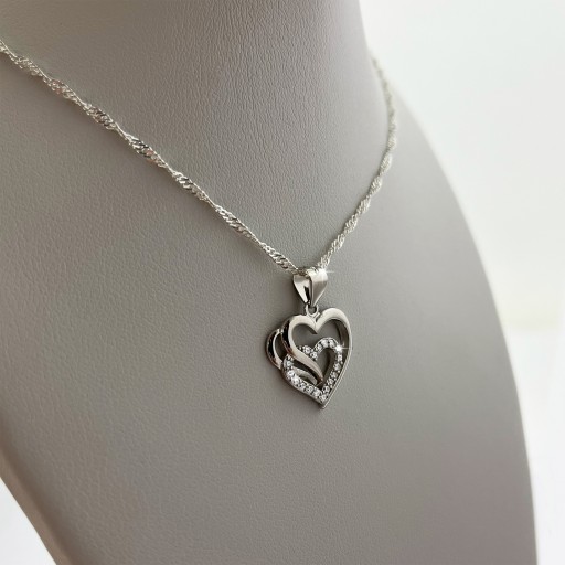 - Przedstawiamy państwu unikatowy damski naszyjnik na łańcuszku Singapur. Serduszko zostało wysadzone błyszczącymi kryształkami najwyższej klasy. Produkt został wykonany z najwyższej jakości srebra próby 925. Ten model naszyjnika z pewnością doceni każda kobieta. Produkt jest solidny i wytrzymały więc spokojnie posłuży długi czas.