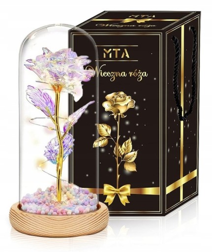 - Dodatkowo, w zestawie znajduje się róża wieczna na drewnianej podstawce, która dodaje romantycznego uroku, tworząc niepowtarzalne połączenie piękna i funkcjonalności.