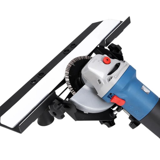 przystawka wraz z podłączoną do niej szlifierką kątową służy do precyzyjnego cięcia płytek pod kątem 45°. Zapewnia wysoką precyzję i dokładne ukosowane płytki oraz oszczędność czasu.