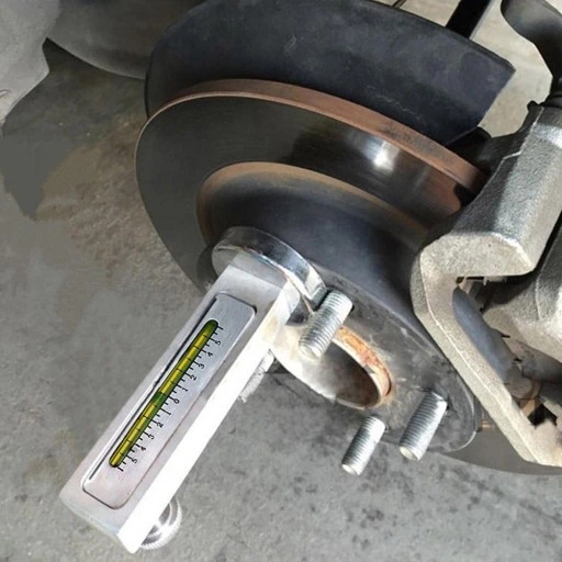 - Mierzy pochylenie i kąt nachylenia kół na piaście koła lub tarczy hamulcowej.