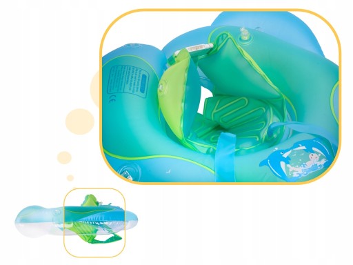 Od teraz Twoje maleństwo będzie bezpiecznie kąpać się z Tobą. Ponton jest zabezpieczony przed wypadnięciem dziecka, specjalne otwory na nogi umożliwiają siedzenie w pontonie bez potrzeby trzymania za koło. Dziecko podczas pływania może bawić się grzechotką w formie piłeczek lub innymi zabawkami do wody.
