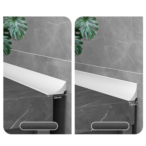 💦💦💦【Rozmiar i kolor】 szerokość białej ściany progowej wynosi 25 mm, wysokość 15 mm, dolna krawędź pod kątem 90 stopni. W zależności od wielkości szczeliny można zainstalować poziomo lub pionowo. Ma 2 m długości i można go łatwo przyciąć nożem do żądanej długości.
