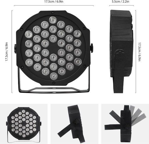 - 36 diod LED Oświetlenie imprezowe składa się z wysokiej jakości diod LED (12 czerwonych / 12 zielonych / 12 niebieskich). Wysoka jasność, niskie zużycie energii i jasny kolor, jakość lamp LED stała, żywotność do 10 000 godzin, ochrona środowiska i oszczędność energii. 36 diod RGB LED może tworzyć zapierające dech w piersiach kolorowe efekty świetlne dzięki mieszaniu kolorów.