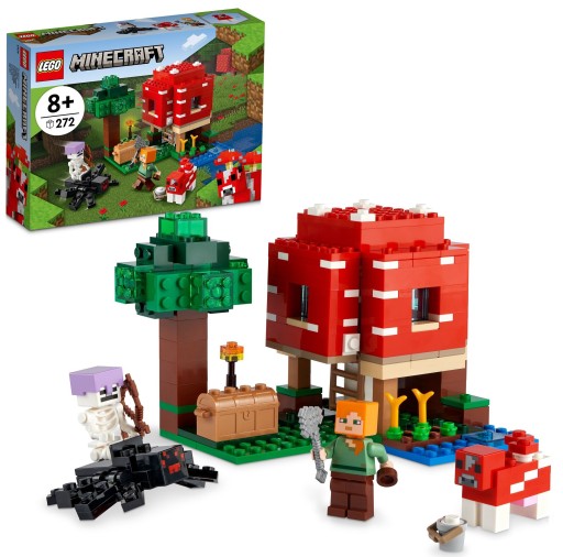 LEGO® Minecraft® Dom w grzybie 21179 — zestaw konstrukcyjny i domek do zabawy; świetny prezent dla graczy w Minecrafta; zawiera Alex, grzybową krowę i pajęczego jeźdźca; fajny prezent dla dzieci i graczy od 8 lat (272 elementy)