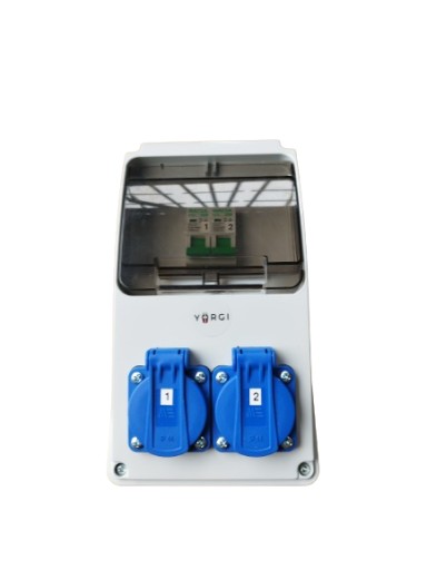 Rozdzielnica wykonana z dużą dokładnością i dbałością o szczegóły, wyposażona w 2szt gniazda 1-fazowego 230v z uziemieniem poprzez bolec oraz okablowane przewodem jak i zabezpieczone 2szt bezpiecznika B16 1P połączone szyną grzebieniową