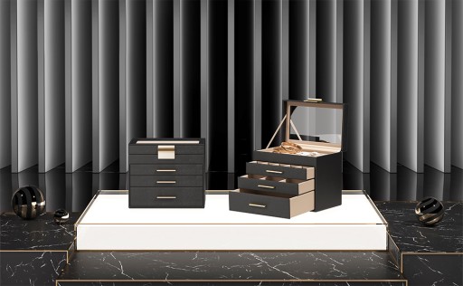 Szkatułka na biżuterię ze szklaną pokrywką 4 poziomy, idealna na przechowywanie biżuterii
