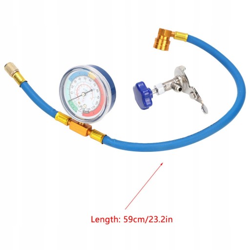 Ten wąż do napełniania czynnikiem chłodniczym R134A jest wyposażony w manometr ułatwiający przeglądanie podczas użytkowania. Charakteryzuje się mocną konstrukcją o maksymalnej wytrzymałości. A gwint 1/2 jest specjalnie zaprojektowany dla ameryki i europy. Będzie działać w dodawaniu czynnika chłodniczego R134A do pojazdu o wysokiej wydajności roboczej.