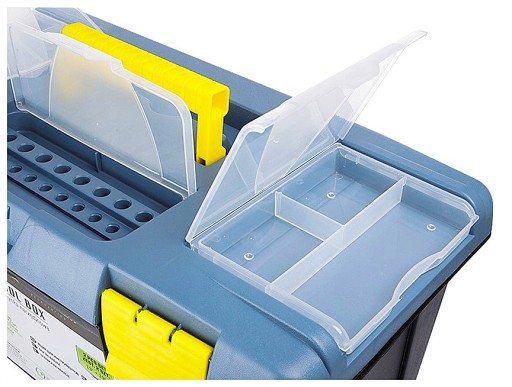 Skrzynki narzędziowe 13" (34x19x13 cm) + 19" (48.5x27x24.5 cm) z tackami i organizerami w pokrywie