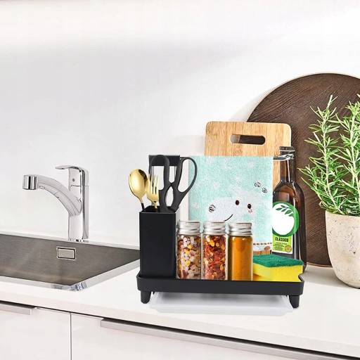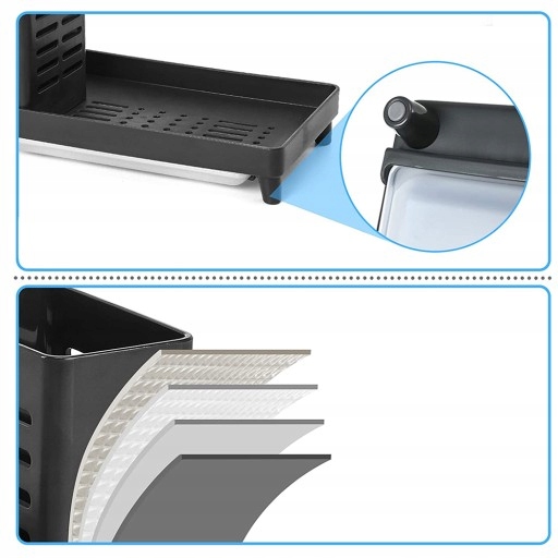 ✔️ 【Doskonały design】: Rama jest bardzo solidna. Gumowe nóżki są przymocowane do spodu, aby zapewnić bezpieczną, antypoślizgową podstawę. Wentylowane miejsce do przechowywania szybko wysycha. Taca ociekowa jest bardzo praktyczna, ponieważ zapobiega zamoczeniu miejsca pracy w kuchni.