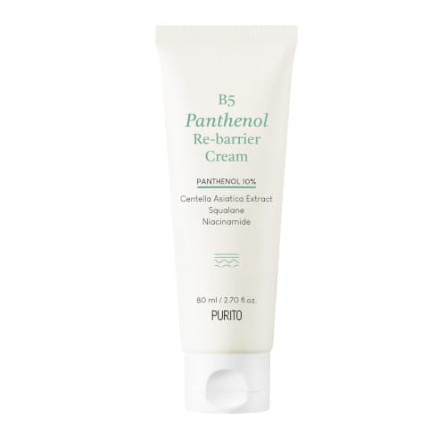 Purito B5 Panthenol Re-Barrier Cream krem nawilżający i odbudowujący. Formuła bogata w pantenol - witaminę B5. Natychmiastowo nawilża i przyciąga wilgoć w skórze. Chroni i wzmacnia barierę skóry. Poprawia jej kondycję, wygładza i zmiękcza. Krem nie zawiera olejków eterycznych i sztucznych zapachów. Zawiera: