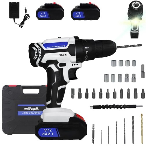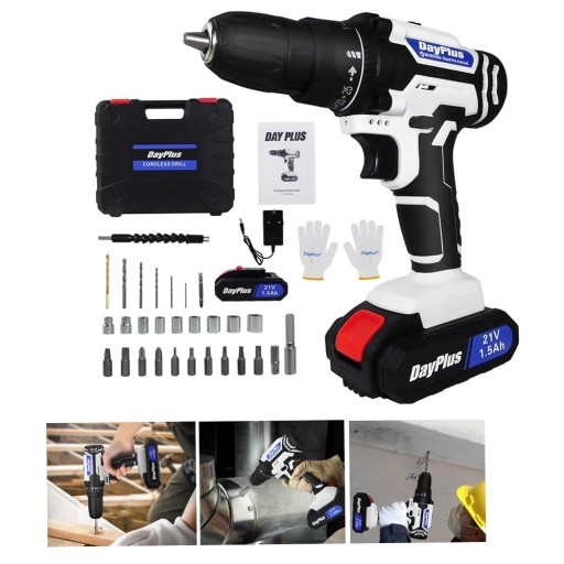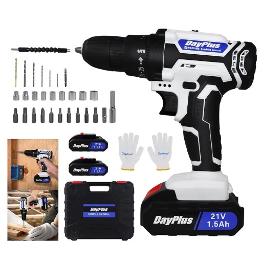 Wiertarka akumulatorowa jest wyposażona w 2 akumulatory litowe 21 V 1500 mAh i szybką ładowarkę, jeden akumulator można w pełni naładować w zaledwie 90 minut, co nadaje się do długich godzin pracy. Akumulatory 21 V są mocne, a każde ogniwo jest testowane przez tysiące cykli, więc nie musisz się martwić o żywotność baterii.