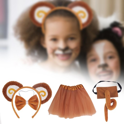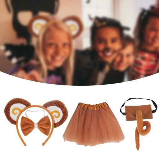 Zestaw z uszami i ogonem małpy Dziewczęta Chłopcy Lekki, uroczy kostium małpy ze spódnicą z gazy