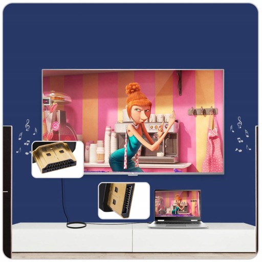 Adapter na przewodzie umożliwia podłączenia komputera/laptopa oraz pozostałych urządzeń wyposażonych w złącze DisplayPort do monitora, projektora lub telewizora wyposażonego w złącze HDMI.