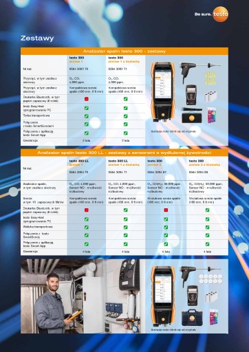 - Zaawansowany analizator spalin testo 300 ze standardowymi celami pomiarowymi O2 i CO do 4000 ppm.