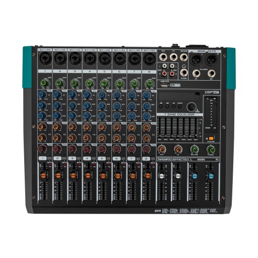 Przemyślany projekt: Wbudowany zasilacz phantom 48 V obsługuje wejście mikrofonu przewodowego/bezprzewodowego/pojemnościowego. Pojedyncza 7-pasmowa korekcja (63 Hz-15 kHz) zapewnia kontrolę tonów dla każdej częstotliwości, zapewniając dźwięk wysokiej jakości. Ponadto każdy kanał ma 3-pasmową korekcję (niska, średnia, wysoka), która umożliwia regulację wysokości tonu tego kanału.