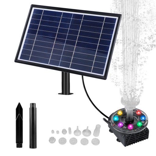 Ta solarna pompa wodna LED jest uaktualnieniem wysokiej jakości panelu słonecznego 7,0 W. Utrzymuje pompę w ruchu nawet przy słabym nasłonecznieniu.