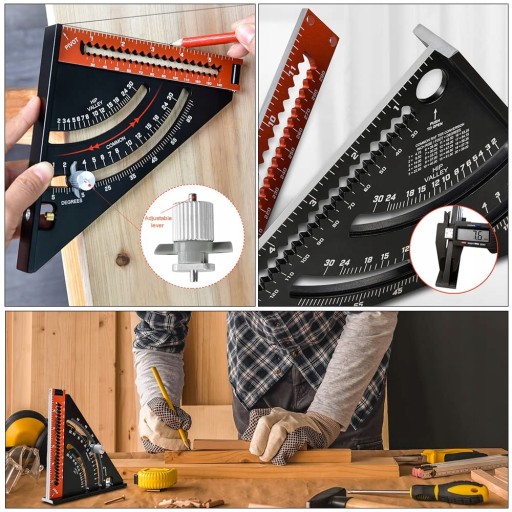 📐Ten kwadrat do obróbki drewna wykonany jest ze stopu aluminium, mocnej konstrukcji, odpornej na korozję obróbki, lekkiej i trwałej