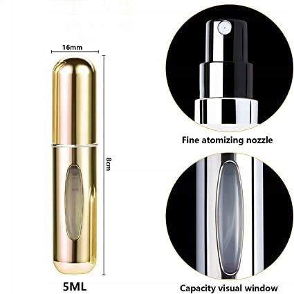 Okno wizualizacyjne: Jego unikalny kształt jest z przezroczystym oknem dla łatwej identyfikacji pojemności wypełniacza i płynu. Materiał Materiał, Wykonany jest z wewnętrznego szklanego pojemnika i metalowej powłoki, która nie jest łatwa do złamania i wycieku. Łatwość napełniania: Dno jest wyposażone w otwór do napełniania. Wystarczy wyrównać rurkę flakonu z perfumami i nacisnąć, aby napełnić go bez użycia narzędzi. Nadaje się do węża o średnicy mniejszej niż 3mm, długość węża większa niż 7mm wąż perfumeryjny.