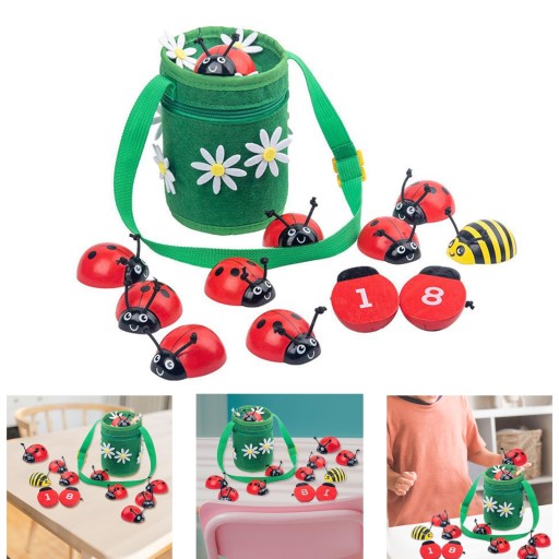- This wooden ladybugs learn to recognize and count numbers , 0 - 10 printed on the bottom , and comes with shouler bag for easy storage the ladybugs toys .