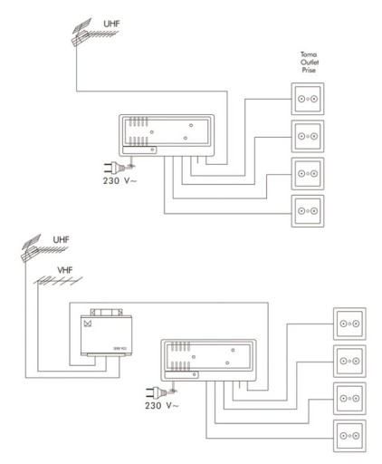 Wzmacniacz sygnału telewizji naziemnej i kablowej DVB-T/T2 oraz analogowego i cyfrowego sygnału radiowego FM i DAB+ posiada wbudowany rozgałęźnik, dzięki temu poza tym, że wzmacnia sygnał, umożliwia również jego podzielenie i podłączenie do czterech niezależnie pracujących odbiorników.