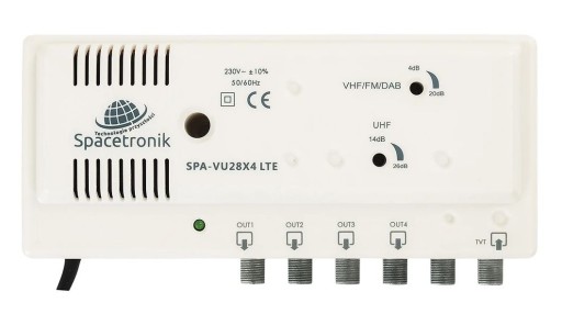 Wzmacniacz sygnału DVB-T i FM 1/ 4 wyjścia, 28dB, SPA-VU28X4 LTE II