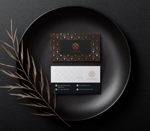 Karty rabatowe lojalnościowe złocone folia miedziana 100 szt + projekt