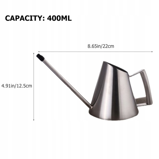 Wykonana z najwyższej jakości i stabilnego materiału ze stali nierdzewnej, konewka jest trwała i bezpieczna do długotrwałego użytkowania.