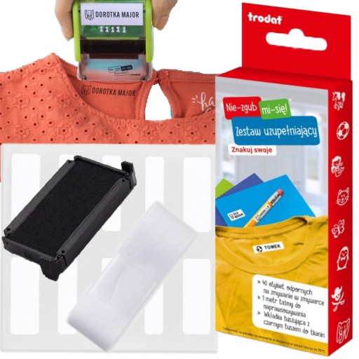 Rozwiązanie pozwalające błyskawicznie oznakować wszystkie rzeczy, zabezpieczając je tym samym przed zgubieniem. Przebadany dermatologicznie, trwały tusz zostawia wyraźne i trwałe odbicia, odporne na pranie i zmywanie w zmywarce, zarówno na jasnych tkaninach, etykietach do naprasowywania na ciemne tkaniny, jak i na naklejkach do przedmiotów ze szkła, plastiku, czy metalu.