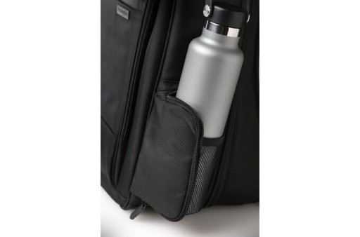 - Pasek umożliwiający przytwierdzenie plecaka do torby na kółkach z uchwytem teleskopowym oraz zintegrowany uchwyt na butelkę zwiększają wygodę użytkowania.
