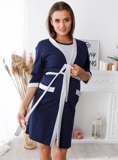 GRANATOWO-SZARY BAWEŁNIANY SZLAFROK BASIC
