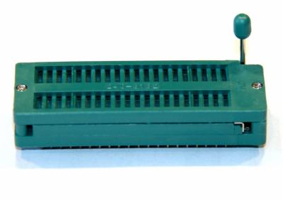 Precyzyjna podstawka testowa ZIF48 styków do układów scalonych. Posiada dźwignię przy pomocy której zaciskane jest gniazdo wielopinowe ze złoconymi stykami do obudów układów scalonych, lub innych modułów.