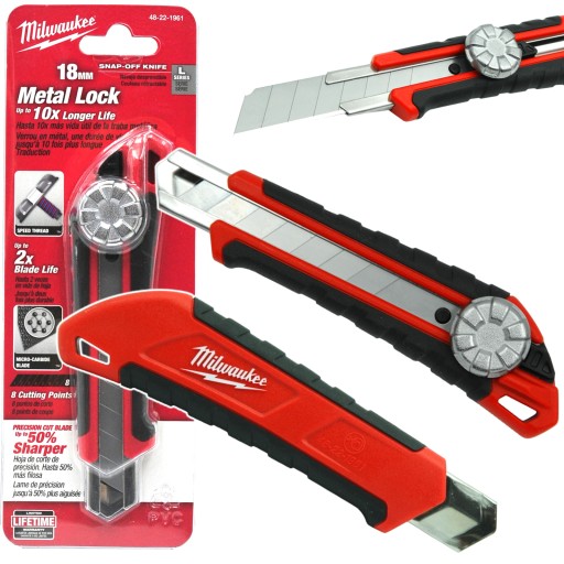 Nóż Milwaukee 18 mm 48221961 jest wyposażony w metalowy zamek zaprojektowany z myślą o maksymalnej trwałości.