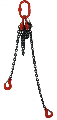 Zawiesie łańcuchowe dwu-cięgnowe zakończone hakami z regulacją długości. Zawiesie umożliwia łatwy i bezpieczny chwyt podnoszonego ładunku. Zawiesie zakończone hakiem z zabezpieczeniem wykorzystuje się do podnoszenia ładunków w przemyśle produkcyjnym oraz w budownictwie. Zawiesie wyposażone w hak skracający które umożliwiają regulację długości zawiesia. Prowadzimy sprzedaż zawiesi łańcuchowych w klasie 8 i w klasie 10 z łańcucha od fi 6mm do fi 32mm. Zawiesia wykonywane są na zamówienie i istnieje duża możliwość konfiguracji takiego zawiesia. Zawiesia łańcuchowe wykonane z materiałów wysokiej klasy wytrzymałości.