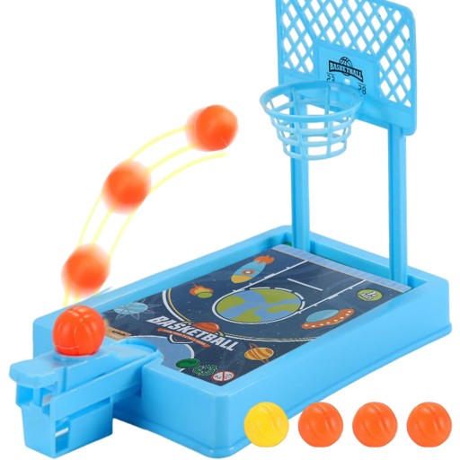 Świetna zabawka -gra w kosz, która zajmuje niewiele miejsca i rozładuje stres w pracy, domu czy podróży. Wystarczy ustawić zabawkę na stole lub ręce, wystrzelić piłeczkę próbując trafić do kosza. Poczuj satysfakcję z ilości zdobytych punktów.